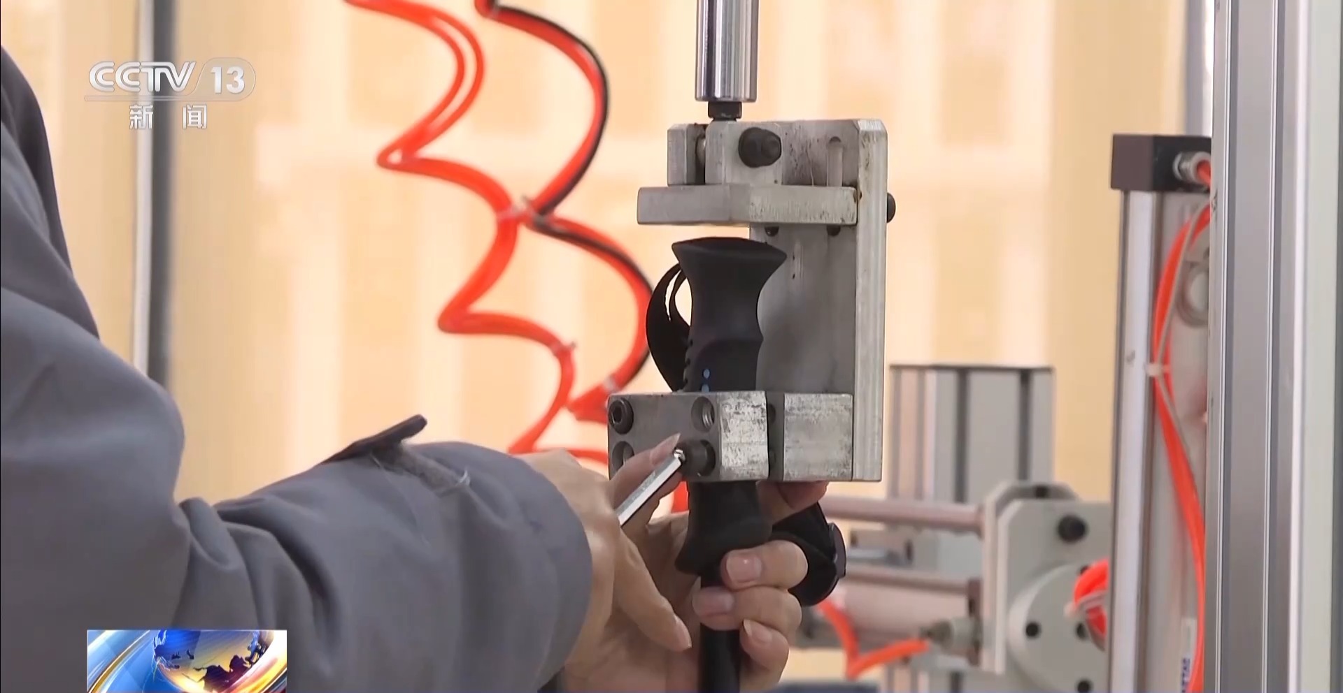 记者来到浙江宁波宁海县的一处生产车间内。从这里走出去的运动器材,有这几个特征:雪场常客、强力支撑、保持平衡。猜到是什么了吗?别着急,给大家看一个道具。